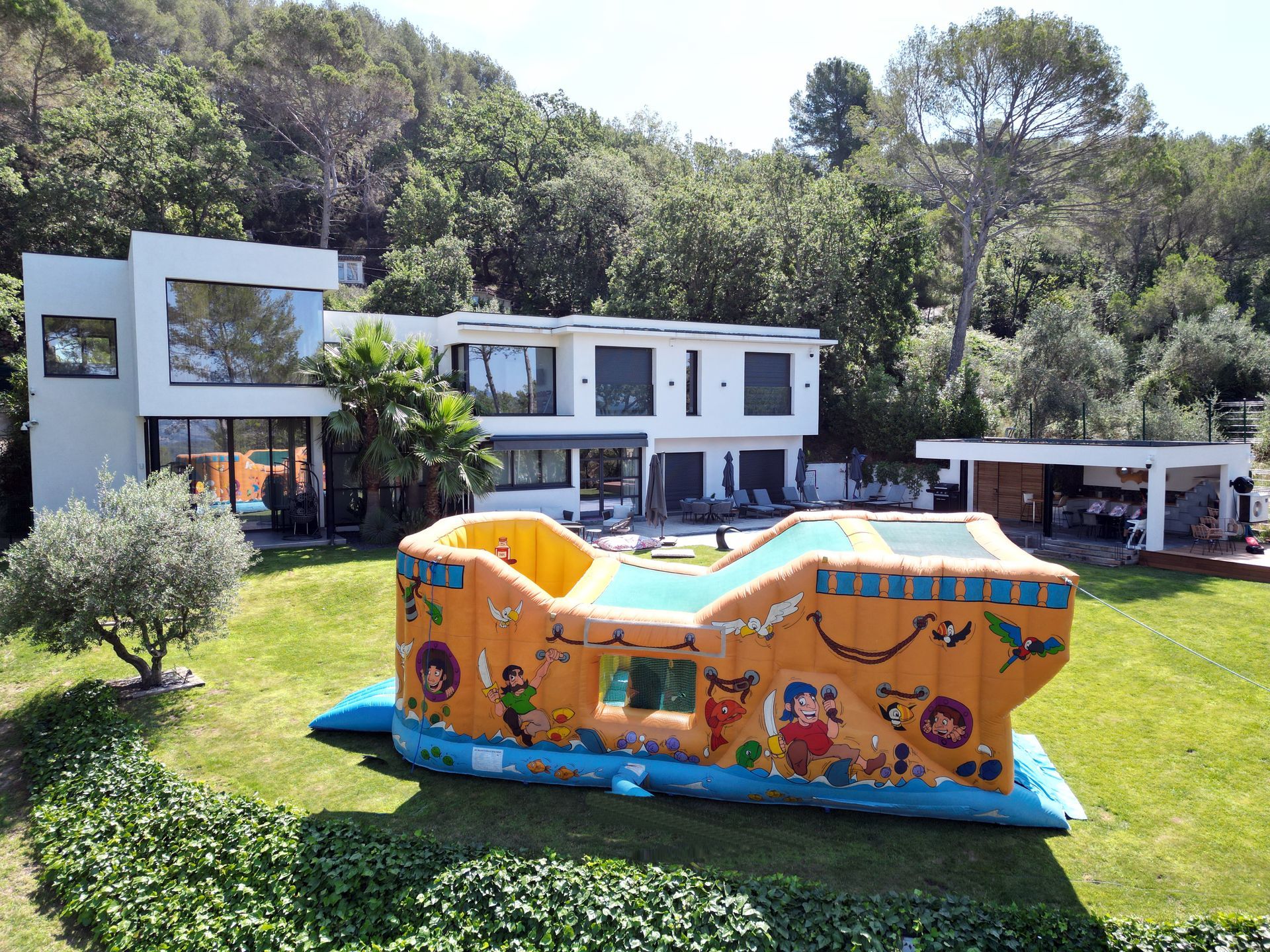 Notre Parcours Aventure XL à été fait sur mesure EN 2025 , il mesure 30 mètres de longueur, en forme de U il faut espace minimum de 12x12 mètres soit 150m2.Fabriqué sur mesure, à ce jour il est unique